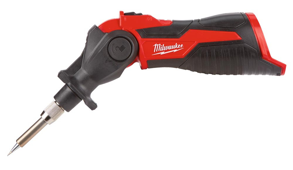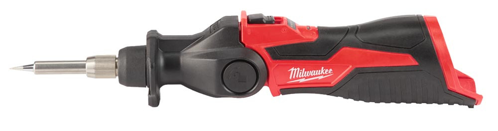 Ausführung: Akku-Lötkolben mit werkzeuglos austauschbarer Lötspitze ∙ Erreicht Einsatztemperatur in nur 20–30 Sekunden ∙ Kopf in 3 Positionen arretierbar – 0°, 45°, 90° ∙ Zweifarbige LED: Grünes Blinken zeigt, dass das Gerät anheizt, grünes Leuchten zeigt, dass das Gerät einsatzbereit ist und rotes Leuchten zeigt, dass das Gerät aus ist, die Lötspitze aber noch heiß ist ∙ Temperaturüberwachung für eine konstante Temperatur während des Einsatzes ∙ LED-Beleuchtung des Arbeitsbereichs ∙ 100 % systemkompatibel mit dem MILWAUKEE®-M12™-Produktprogramm
