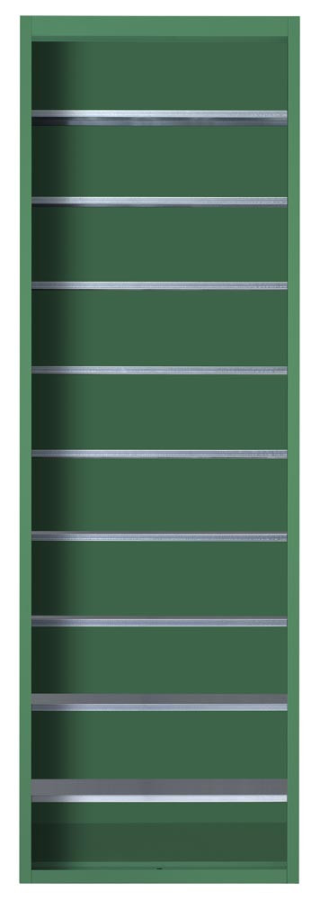 Magazinschrank, ohne Türen, RAL 6011 resedagrün, BxTxH 680x280x2150 mm