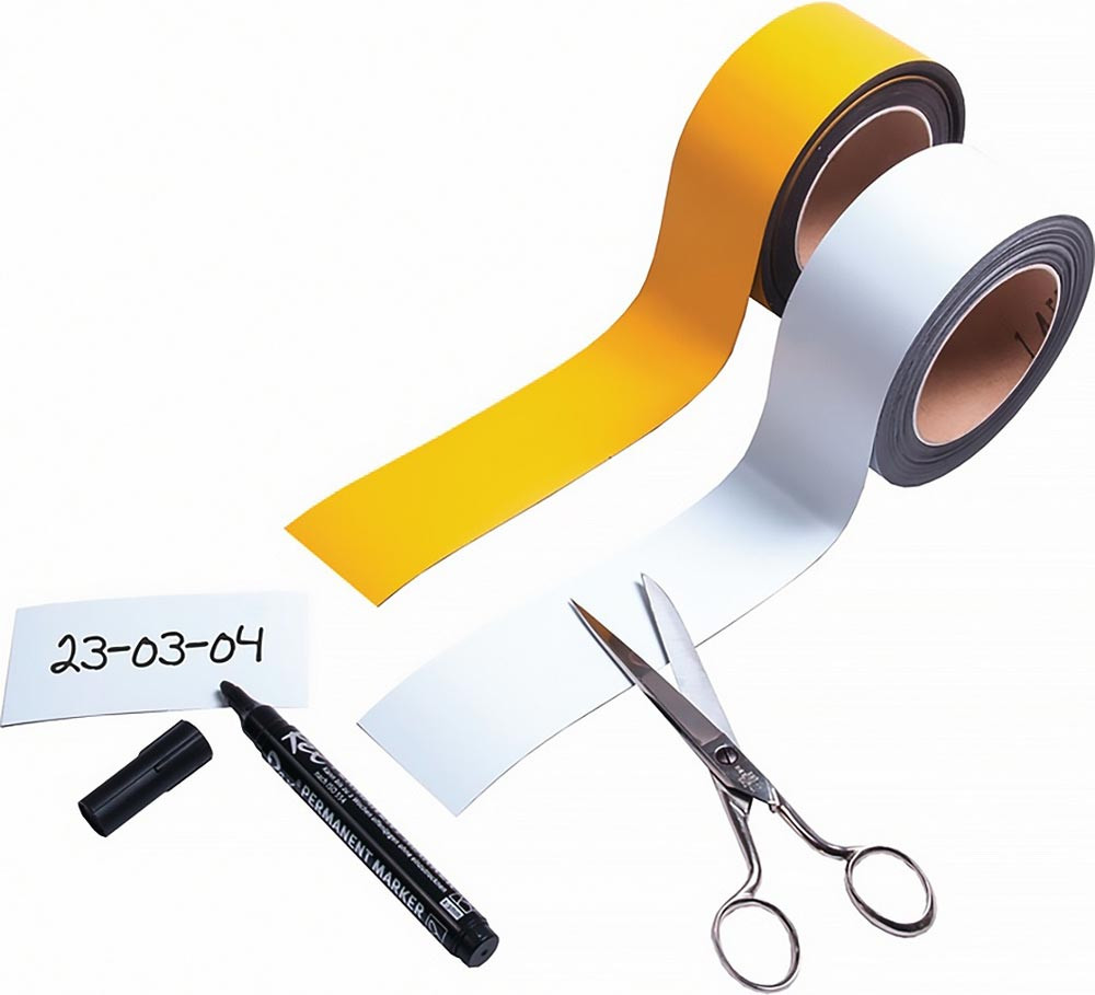 zur Kennzeichnung von Regalen, Behältern usw. · magnetisierte Bänder · beschriftbar und individuell zuschneidbar · Bandstärke 0,9 mm · Bandlänge 10 m · Lieferung in Rollen