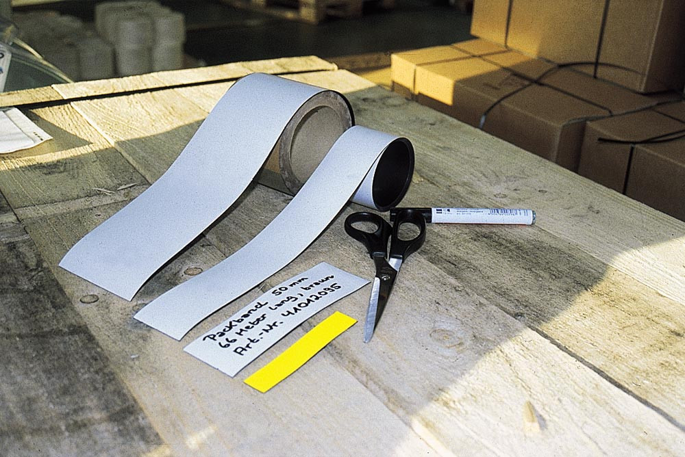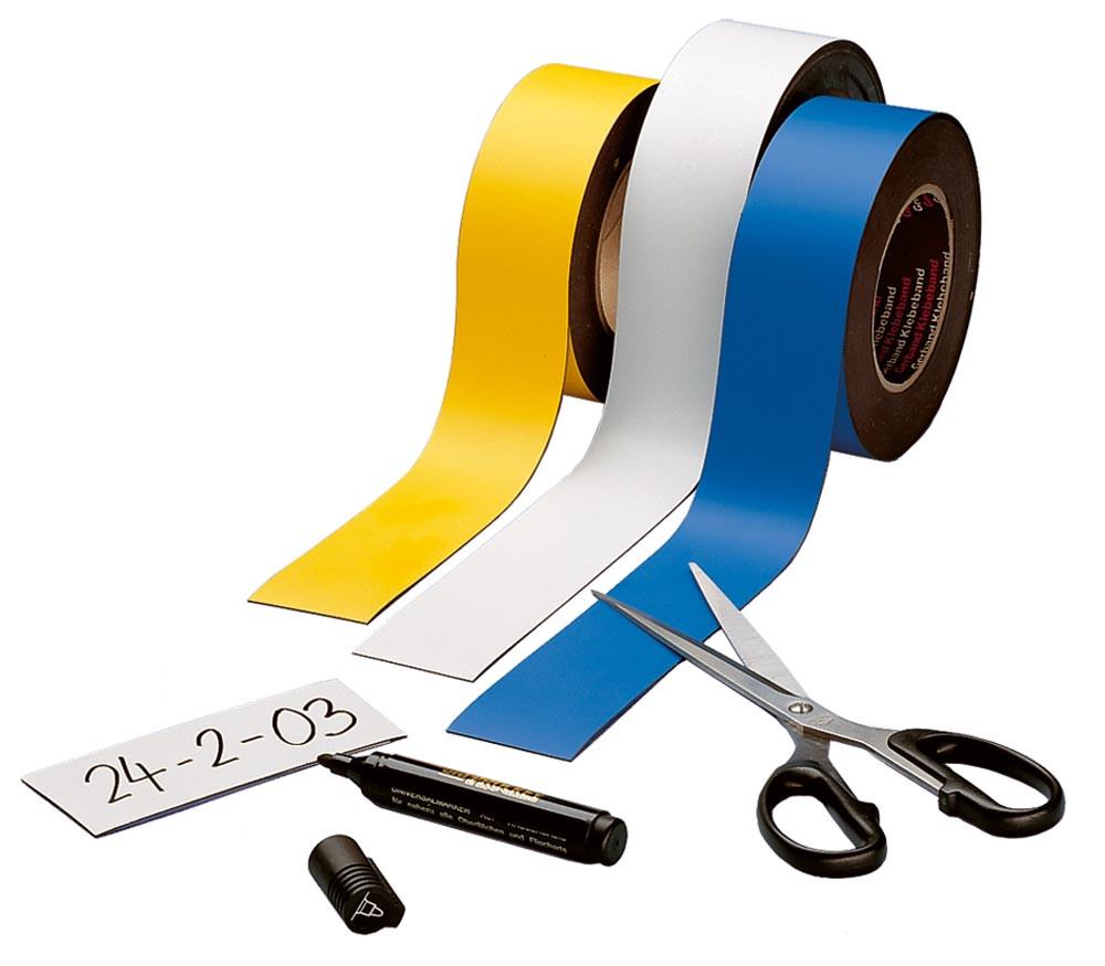 ∙ Dauermagnetische Haftung auf allen eisenhaltigen Flächen ∙ Als Rollenware in beliebiger Länge zuzuschneiden, individuell zu beschriften und rückstandslos zu entfernen · Rolle mit 10 Meter Länge