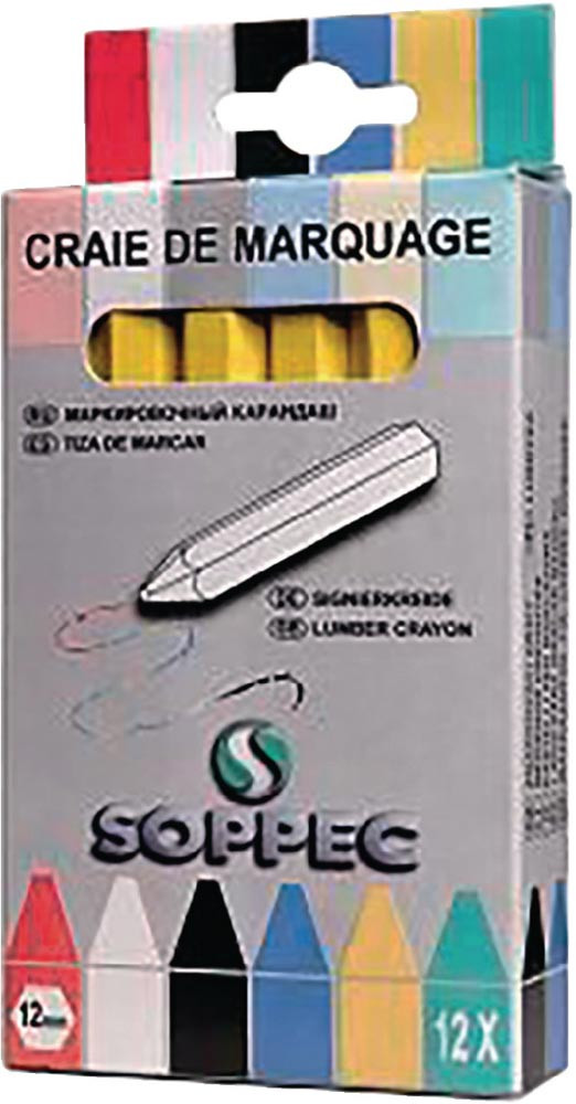 auf Wachsbasis · für witterungsbeständige Markierungen auf jeder Oberfläche: Metall, trockenes oder feuchtes Holz, Pappe, Backstein, Asphalt, Kunststoff · starke Farbintensität, sehr gute Sichtbarkeit · Schachtel mit 12 Kreidestücken