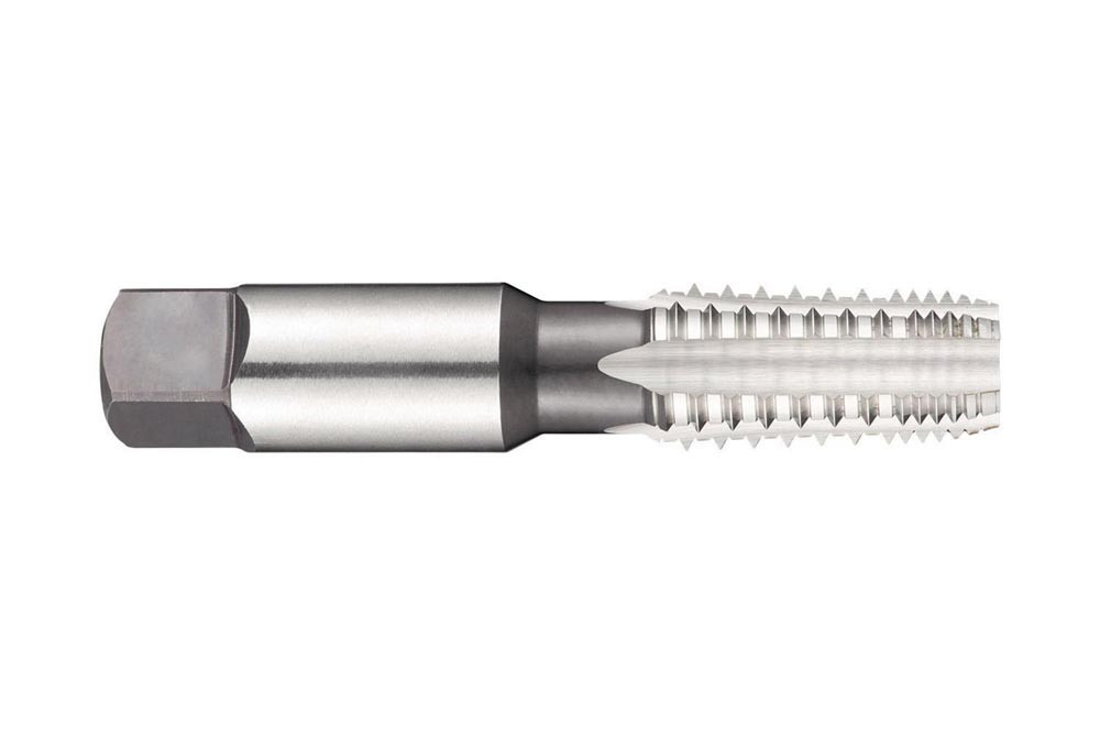 Gerade genuteter Gewindebohrer · Anschnittform C mit 2-3xP Gewindeanschnitt · kegeliges Rohrgewinde NPT 3/8″ mit 18 Gängen / Inch und Normal Toleranzklasse · Abmessungen nach ~ANSI B94.9 Standard mit 17.8mm Schaft und 13.5mm Vierkantantrieb · HSS mit blanker Oberfläche 1.5xD Durchgangs- und Sacklochgewinde in legierter