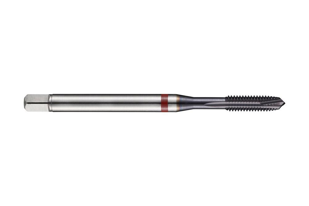 Spiralpunkt Gewindebohrer Red Shark · Anschnittform B mit 3.5-5xP Gewindeanschnitt · ISO-Metrisches Gewinde M10 mit 1.50 mm Steigung und 6H Toleranzklasse · Abmessungen nach DIN 371 Standard mit 10.0mm Schaft und 8.0mm Vierkantantrieb · HSSE-PM mit TiAlN-Top Beschichtung 2.5xD Durchgangsgewinde in Kohlenstoffstahl · legierter und Werkzeugstahl