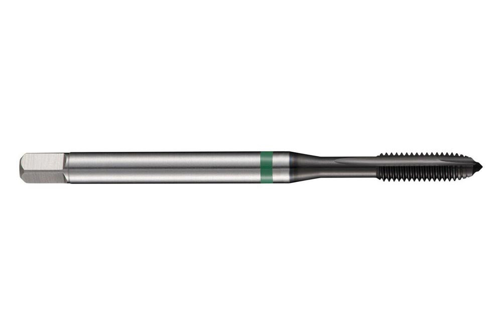 Spiralpunkt Gewindebohrer Green Shark · Anschnittform B mit 3.5-5xP Gewindeanschnitt · ISO-Metrisches Gewinde M4 mit 0.70 mm Steigung und 6H Toleranzklasse · Abmessungen nach DIN 371 Standard mit 4.5mm Schaft und 3.4mm Vierkantantrieb · HSSE-PM mit Super-B Beschichtung 2.5xD Durchgangsgewinde in Aluminiumguss