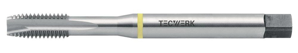 HSS-Co · Form B · Typ AL · Gelbring · geradegenutet · Flanken hinterschliffen · metrisches ISO-Gewinde · DIN 13 Blatt 1 · Toleranzfeld ISO2 (6H) · mit Schälanschnitt für Durchgangsgewinde · für langspanende, weiche Werkstoffe