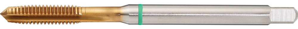 HSS-Co · Form B · Typ UNIVERSAL · TiN-beschichtet · Grünring · geradegenutet · Flanken hinterschliffen · metrisches ISO-Gewinde · DIN 13 Blatt 1 · Toleranzfeld ISO2 (6H) · mit Schälanschnitt für Durchgangsgewinde · für Stahl, rostfreie Stähle, Sphäroguss und NE-Metalle