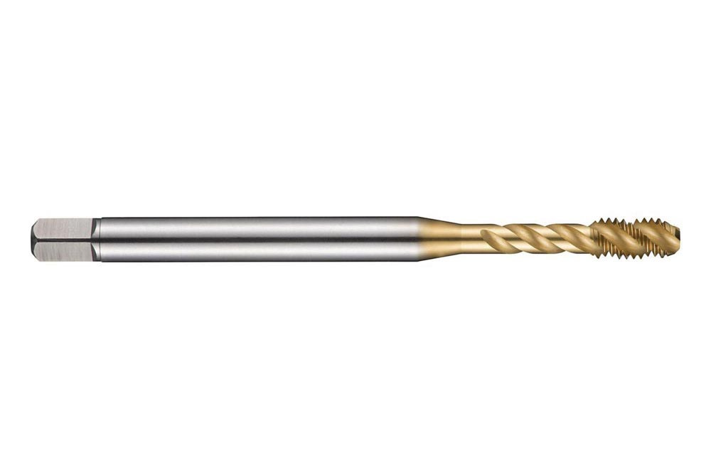 Spiral genuteter Gewindebohrer · Anschnittform C mit 2-3xP Gewindeanschnitt · ISO-Metrisches Gewinde M3 mit 0.50 mm Steigung und 6H Toleranzklasse · Abmessungen nach DIN 371 Standard mit 3.5mm Schaft und 2.7mm Vierkantantrieb · HSSE-PM mit TiN Beschichtung und 45° Helixwinkel 2.5xD Sacklochgewinde in Stahl und Stahlguss · Ferritischer · Martensitischer und Austenitischer Edelstahl und Aluminiumguss