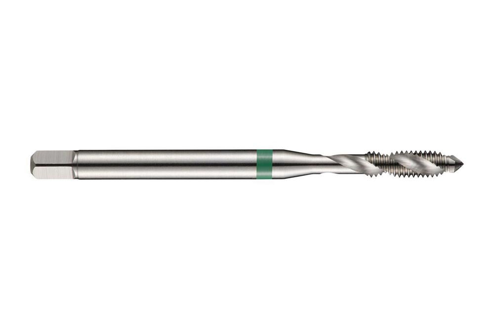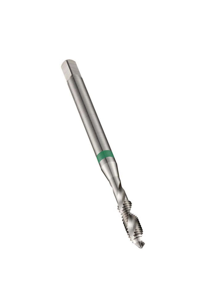 Spiral genuteter Gewindebohrer Green Shark · Anschnittform C mit 2-3xP Gewindeanschnitt · ISO-Metrisches Gewinde M6 mit 1.00 mm Steigung und 6H Toleranzklasse · Abmessungen nach DIN 371 Standard mit 6.0mm Schaft und 4.9mm Vierkantantrieb · HSSE-PM mit blanker Oberfläche und 35° Helixwinkel 2.5xD Sacklochgewinde in Nichteisenmetalle
