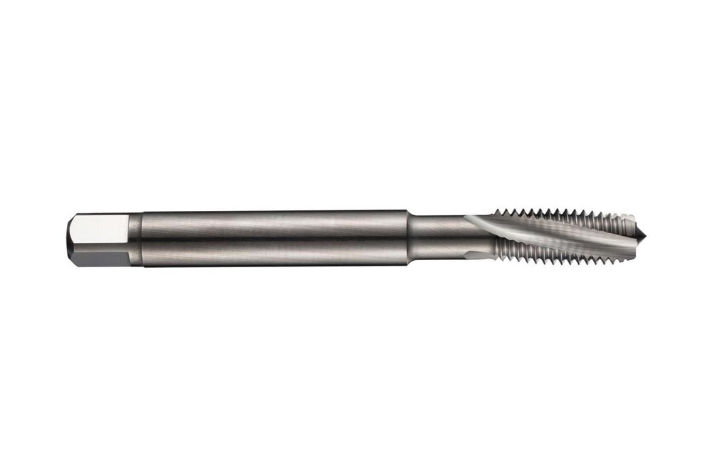 Spiral genuteter Gewindebohrer · Anschnittform C mit 2-3xP Gewindeanschnitt · ISO-Metrisches Gewinde M8 mit 1.25 mm Steigung und 6H Toleranzklasse · Abmessungen nach DIN 371 Standard mit 8.0mm Schaft und 6.2mm Vierkantantrieb · VHM mit blanker Oberfläche und 15° Helixwinkel 2xD Sacklochgewinde in Temperguss · duktiles · austenitisch oder austemperiertes duktiles und verdichteter Graphitguss und Aluminiumguss