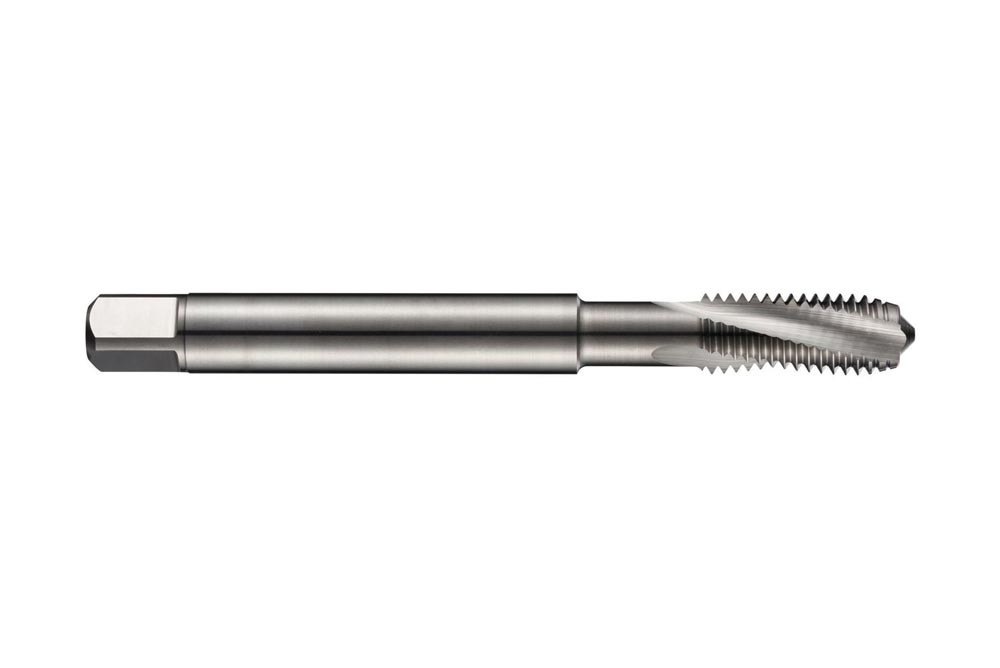 Spiral genuteter Gewindebohrer · Anschnittform C mit 2-3xP Gewindeanschnitt · ISO-Metrisches Gewinde M8 mit 1.25 mm Steigung und 6H Toleranzklasse · Abmessungen nach DIN 371 Standard mit 8.0mm Schaft und 6.2mm Vierkantantrieb · VHM mit blanker Oberfläche und 15° Helixwinkel 2.5xD Sacklochgewinde in Temperguss · duktiles · austenitisch oder austemperiertes duktiles und verdichteter Graphitguss und Aluminiumguss