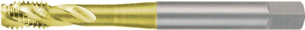 HSS · TiN-beschichtet · Form C · mit Rechtsspiralnuten 35° · Flanken hinterschliffen · metrisches ISO-Gewinde · DIN 13 · Toleranzfeld ISO2 (6H) · ca. 2-3 Gänge · für Sacklochgewinde
