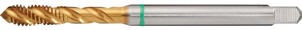 HSS-Co · Form C · Typ UNIVERSAL · TiN-beschichtet · Grünring · mit Rechtsdrall 40° · Flanken hinterschliffen · metrisches ISO-Gewinde · DIN 13 Blatt 1 · Toleranzfeld ISO2 (6H) · für Sacklochgewinde · für Stahl, rostfreie Stähle, Sphäroguss und NE-Metalle