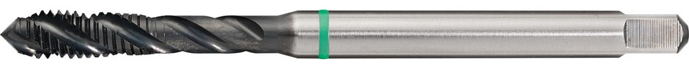 HSS-Co · Form C · Typ UNIVERSAL · vaporisiert · Grünring · mit Rechtsdrall 40° · Flanken hinterschliffen · metrisches ISO-Gewinde · DIN 13 Blatt 1 · Toleranzfeld ISO2 (6H) · für Sacklochgewinde · für Stahl, rostfreie Stähle, Sphäroguss und NE-Metalle