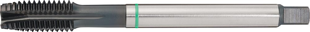 HSS-Co · Form B · Typ UNIVERSAL · vaporisiert · Grünring · geradegenutet · Flanken hinterschliffen · metrisches ISO-Feingewinde MF · DIN 13 · Toleranzfeld ISO2 (6H) · mit Schälanschnitt für Durchgangsgewinde · für Stahl, rostfreie Stähle, Sphäroguss und NE-Metalle