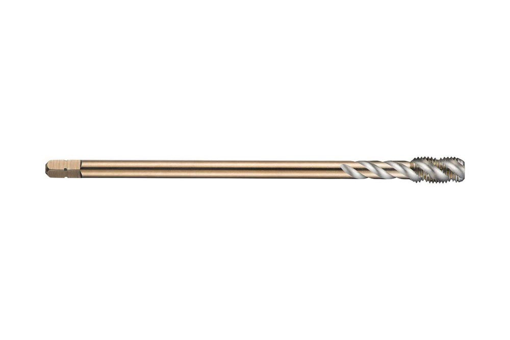 Spiral genuteter Gewindebohrer · Anschnittform C mit 2-3xP Gewindeanschnitt · ISO-Metrisches Feingewinde M12 mit 1.25 mm Steigung und 6H Toleranzklasse · Abmessungen nach DIN 374 Standard mit 9.0mm Schaft und 7.0mm Vierkantantrieb · HSSE-PM mit blanker Oberfläche und 45° Helixwinkel 2.5xD Sacklochgewinde in Baustahl und Kohlenstoffstahl und Reinaluminium oder Aluminiumguss
