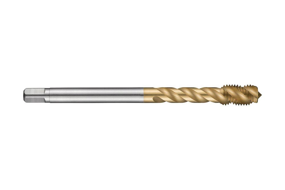 Spiral genuteter Gewindebohrer · Anschnittform C mit 2-3xP Gewindeanschnitt · ISO-Metrisches Feingewinde M18 mit 1.50 mm Steigung und 6H Toleranzklasse · Abmessungen nach DIN 374 Standard mit 14.0mm Schaft und 11.0mm Vierkantantrieb · HSSE-PM mit TiN Beschichtung und 45° Helixwinkel 2.5xD Sacklochgewinde in Baustahl · Kohlenstoffstahl und legierter · Ferritischer · Martensitischer und Austenitischer Edelstahl und Aluminiumguss