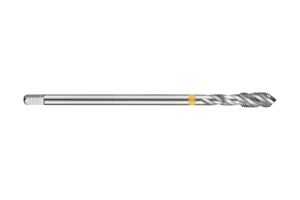 Spiral genuteter Gewindebohrer Yellow Shark · Anschnittform C mit 2-3xP Gewindeanschnitt · ISO-Metrisches Feingewinde M16 mit 1.50 mm Steigung und 6H Toleranzklasse · Abmessungen nach DIN 374 Standard mit 12.0mm Schaft und 9.0mm Vierkantantrieb · HSSE-PM mit Glanzchrom-Oberfläche und 40° Helixwinkel 2xD Sacklochgewinde in Baustahl und Kohlenstoffstahl und Kupfer oder Kupferlegierungen