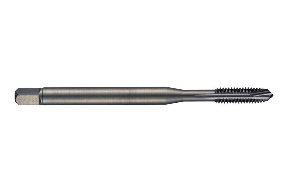 Spiralpunkt Gewindebohrer · Anschnittform B mit 3.5-5xP Gewindeanschnitt · ISO-Metrisches Gewinde M12 mit 1.75 mm Steigung und 6H Toleranzklasse · Abmessungen nach DIN 376 Standard mit 9.0mm Schaft und 7.0mm Vierkantantrieb · HSSE-PM mit vaporisierter Oberfläche 2.5xD Durchgangsgewinde in Allzweckanwendungen