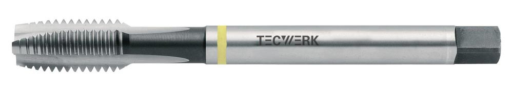 HSS-Co · Form B · Typ AL · Gelbring · geradegenutet · Flanken hinterschliffen · metrisches ISO-Gewinde · DIN 13 Blatt 1 · Toleranzfeld ISO2 (6H) · mit Schälanschnitt für Durchgangsgewinde · für langspanende, weiche Werkstoffe