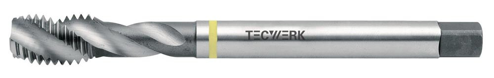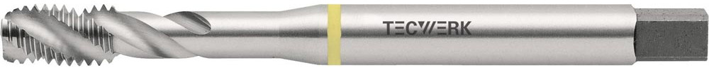 HSS-Co · Form C · Typ AL · Gelbring · mit Rechtsdrall 45° · Flanken hinterschliffen · metrisches ISO-Gewinde · DIN 13 Blatt 1 · Toleranzfeld ISO2 (6H) · für Sacklochgewinde · für langspanende, weiche Werkstoffe