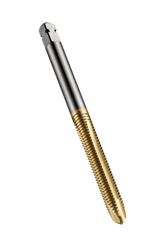 Spiralpunkt Gewindebohrer · Anschnittform B mit 3.5-5xP Gewindeanschnitt · ISO-Metrisches Gewinde M6 mit 1.00 mm Steigung und 6H Toleranzklasse · Abmessungen nach ISO 529 Standard mit 6.3mm Schaft und 5.0mm Vierkantantrieb · HSSE-PM mit TiN Beschichtung 2.5xD Durchgangsgewinde in Baustahl · Kohlenstoffstahl und legierter · Ferritischer · Martensitischer und Austenitischer Edelstahl und Reinaluminium oder Aluminiumguss und Kupfer oder Kupferlegierungen