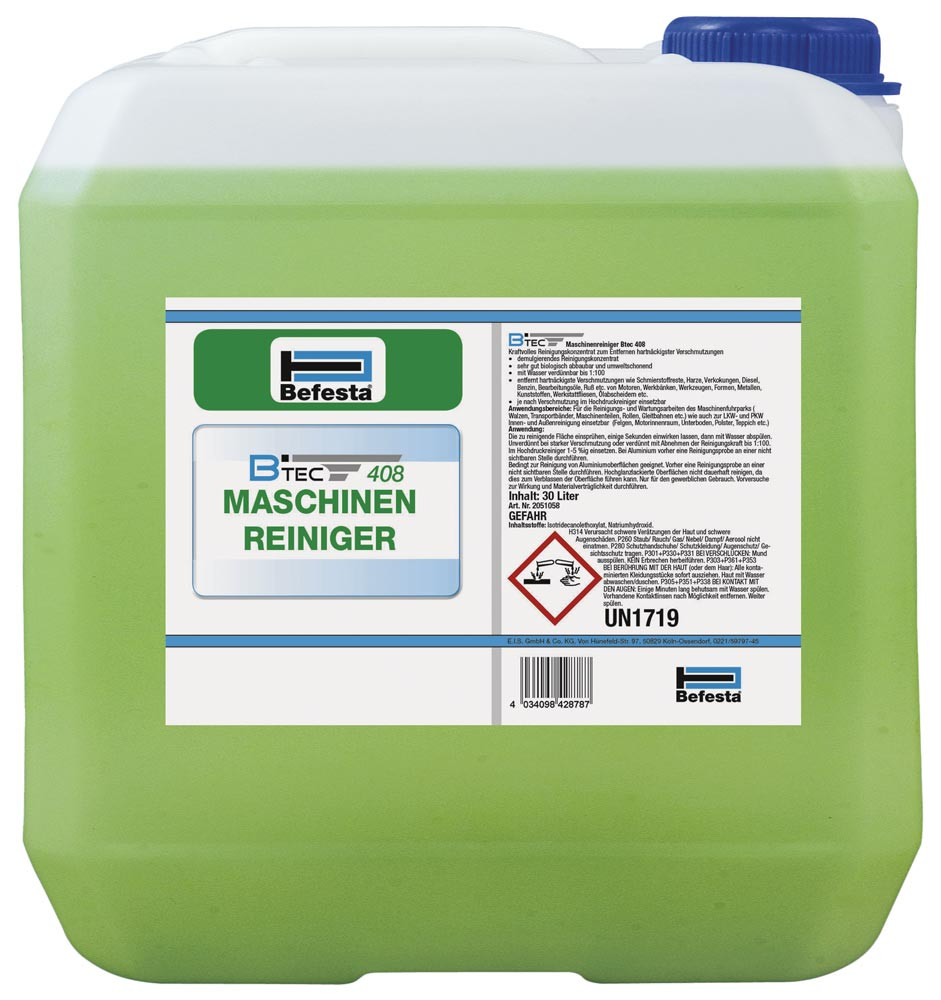 Ausführung: Kraftvolles, demulgierendes Reinigungskonzentrat, das mit Wasser bis zu 1:100 verdünnt werden kann ∙ Biologisch abbaubar gemäß VO EG-Nr. 648/2004 ∙ Entfernt hartnäckigste Verschmutzungen wie z. B. Schmierstoffreste, Verkokungen, Ruß, Bearbeitungsöle etc. ∙ Je nach Verschmutzung auch in Hochdruckreinigern einsetzbar ∙ pH-Wert 13-14