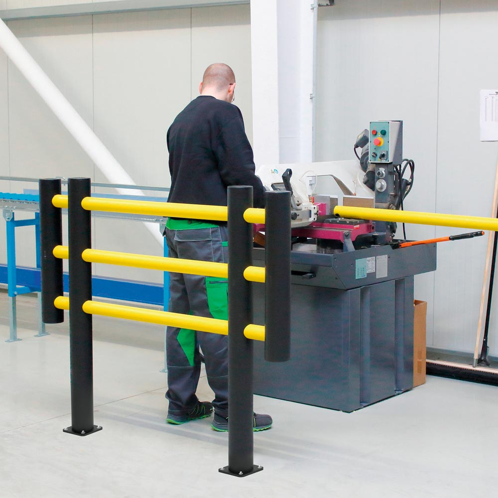 ∙ Einsetzbar im Innen- und Außenbereich ∙ Flexibles PE · 100 % recyclebar ∙ Material verformt und kehrt nach der Kollision in den Ursprungszustand zurück ∙ Minimiert Instandhaltungskosten ∙ Abriebfest, korrosionsfrei, widerstandsfähig ∙ Optimaler Schutz vor Anfahrschäden ∙ Zum Aufdübeln mittels Bodenplatten, 150 x 150 mm ∙ Befestigungsmaterial inklusive ∙ Hohe Warnwirkung ∙ Sichert Bereiche vor Maschinen oder Eingänge ∙ Außenseiten mit zusätzlichem Handlaufabschluss ∙ Pfostendurchmesser 110 mm, Pfostenhöhe 1200 mm, Holmdurchmesser 63 mm ∙ Anpralllast 2500 Joule (getestet im Winkel von 90°) ∙ Farbe gelb/schwarz