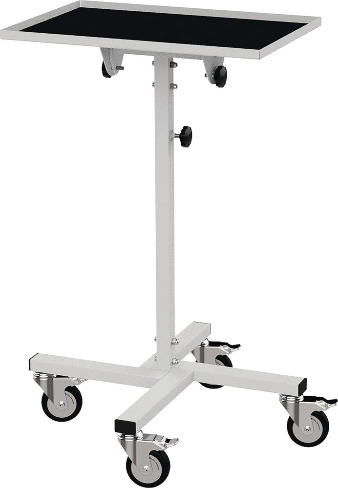 Profilstahl-Rohrkonstruktion · pulverbeschichtet, lichtgrau, RAL 7035 · stufenlos höhenverstellbar · Tragfähigkeit 30 kg · 4 Lenkrollen, davon 2 mit Feststeller Ø 100 mm · Anlieferung unmontiert