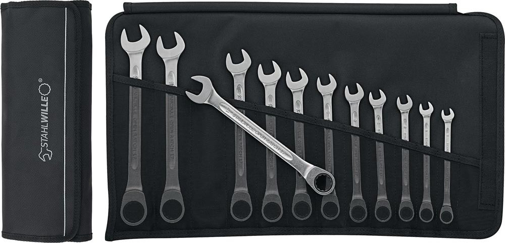 Maulringratschenschlüsselsatz 17F/12 12-teilig Schlüsselweiten 8-19 mm flach