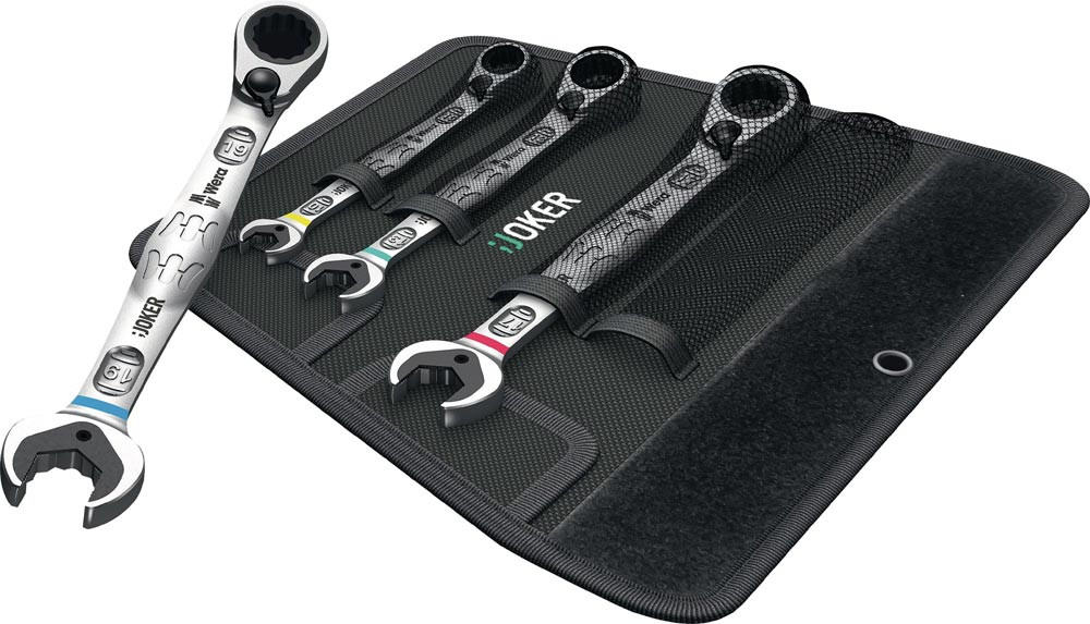 Maulringratschenschlüsselsatz Joker 4-teilig Schlüsselweiten 10-19 mm Umschalthebel, Ringseite 15 gekröpft