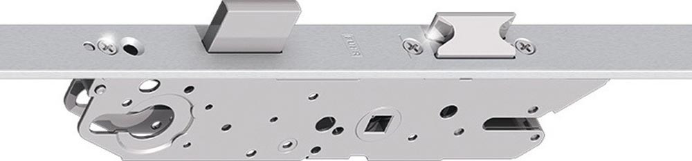 3-fach-Verriegelung mit Stahl-Bolzenriegel · für Haus- und Wohnungseingangstüren · PZW Ausführung · allseitig geschlossener Schlosskasten · 2-tourig · mit Wechsel · abgerundet · Entfernung 92 mm · Drückerhöhe 1050 mm · ohne Schließbleche · inklusive Endkappen