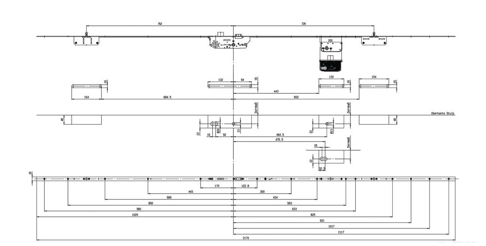 Mehrfachverriegelung multisafe 855GL PZW 24/35/92/8 mm Flachstulp Edelstahl 2170 mm Bolzenriegel E6428589