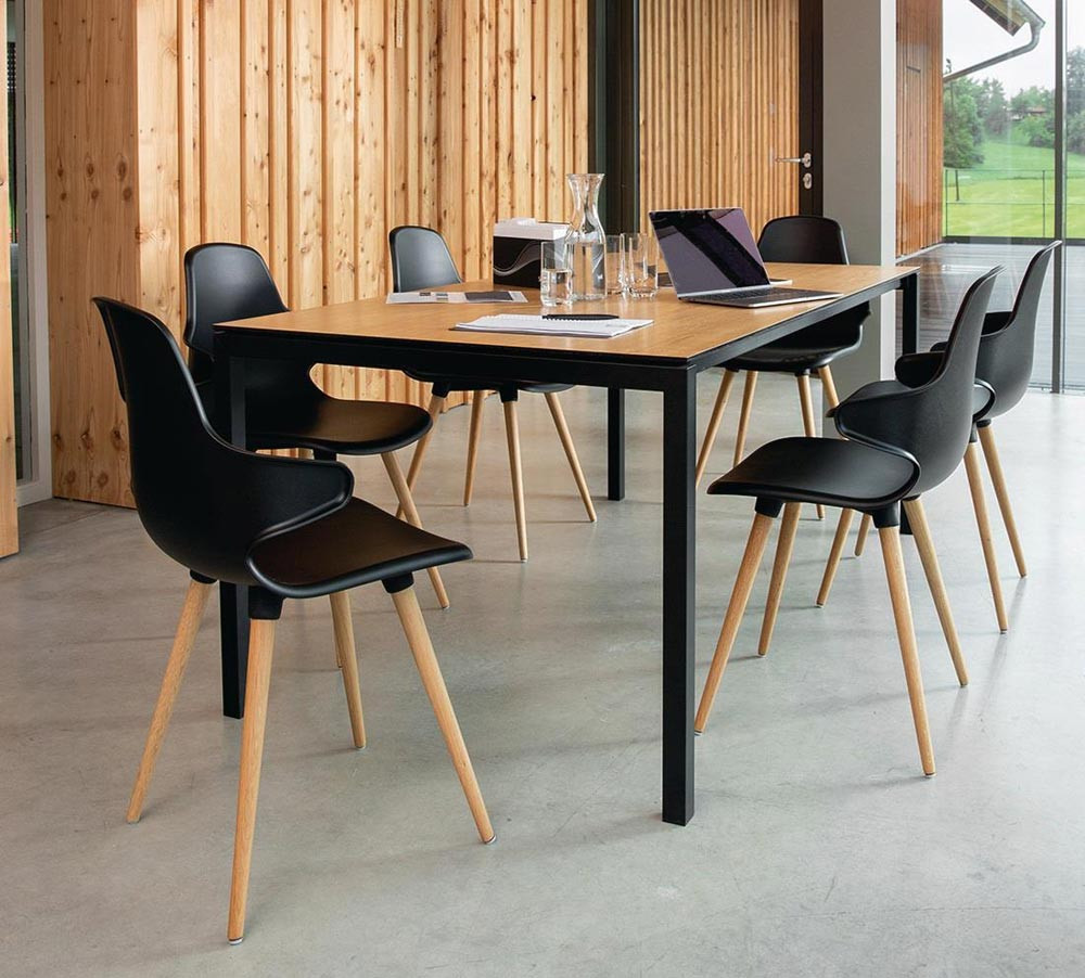 für einen vielfältigen Einsatz · für den Wartebereich, Konferenzräume, Kantine, Aufenthaltsräume, Cafeteria etc. · 4-Fuß-Stuhl · ergonomische Kunststoffschale · Füße verschraubbar über eine Gewindestange in das Sitzträgerkreuz · Kunststoffgleiter für alle Fußböden geeignet · VE = 2 Stück im Karton