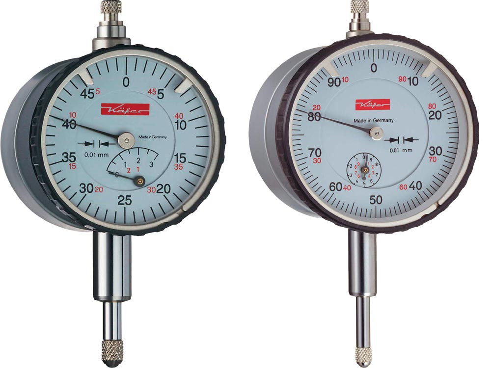 mit magnetischer Rückwand · Einspannschaft Ø 8 mm h6 und Messbolzen aus nichtrostendem Stahl · verstellbare Toleranzmarken · Gehäuse Pressmessing