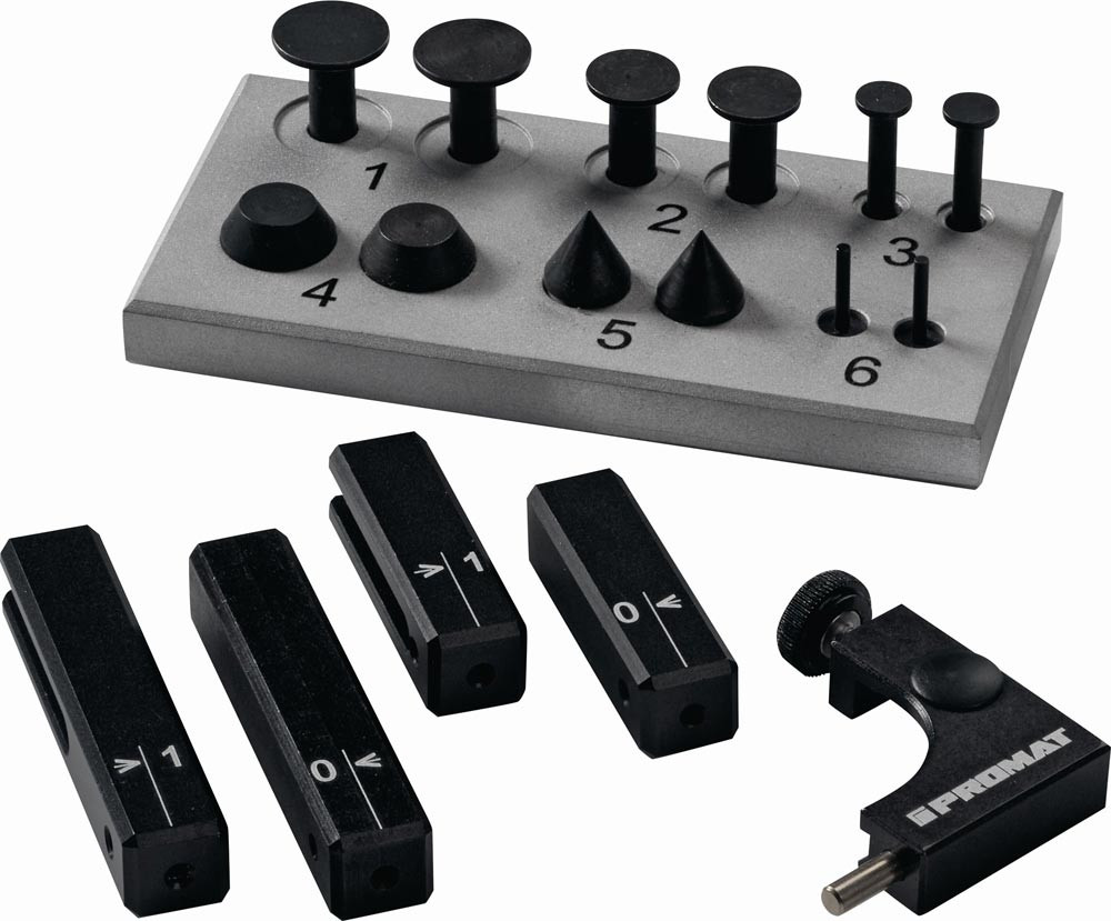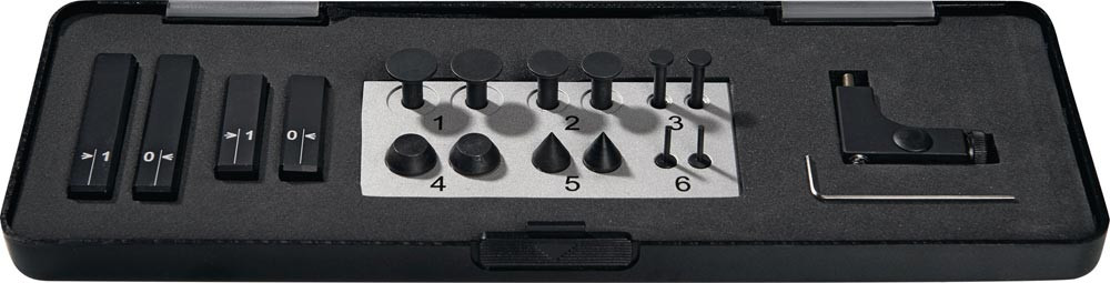 passend für digital Messschieber mit Schnabellänge 40 mm bzw. einer Schnabelstärke von 3,50 bis ca. 3,85 mm · zum Messen von Bohrungsabständen, Abständen, Nuten · Tasteinsätze sind auf einer Metallplatte verschraubt (Sicherung vor Verlust) · Messeinsätze mit Aufnahmegewinde M2,5