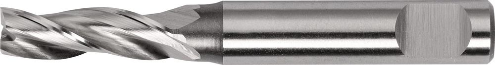 HSS-Co8 · Dreischneider · lang · Zentrumschnitt · Zylinderschaft mit Mitnahmefläche · rechtsschneidend · zum Fräsen von Werkstoffen mit geringer und mittlerer Festigkeit bis ca. 800 N/mm²