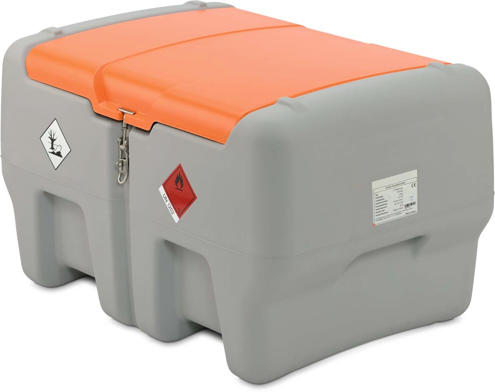 Mobile Dieseltankstation, Vol. 440 l, mit Klappdeckel, Elektropumpe 12 V, 30 l/min und Automatik-Zapfpistole