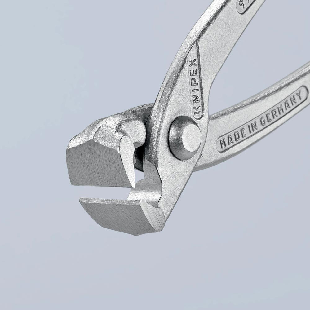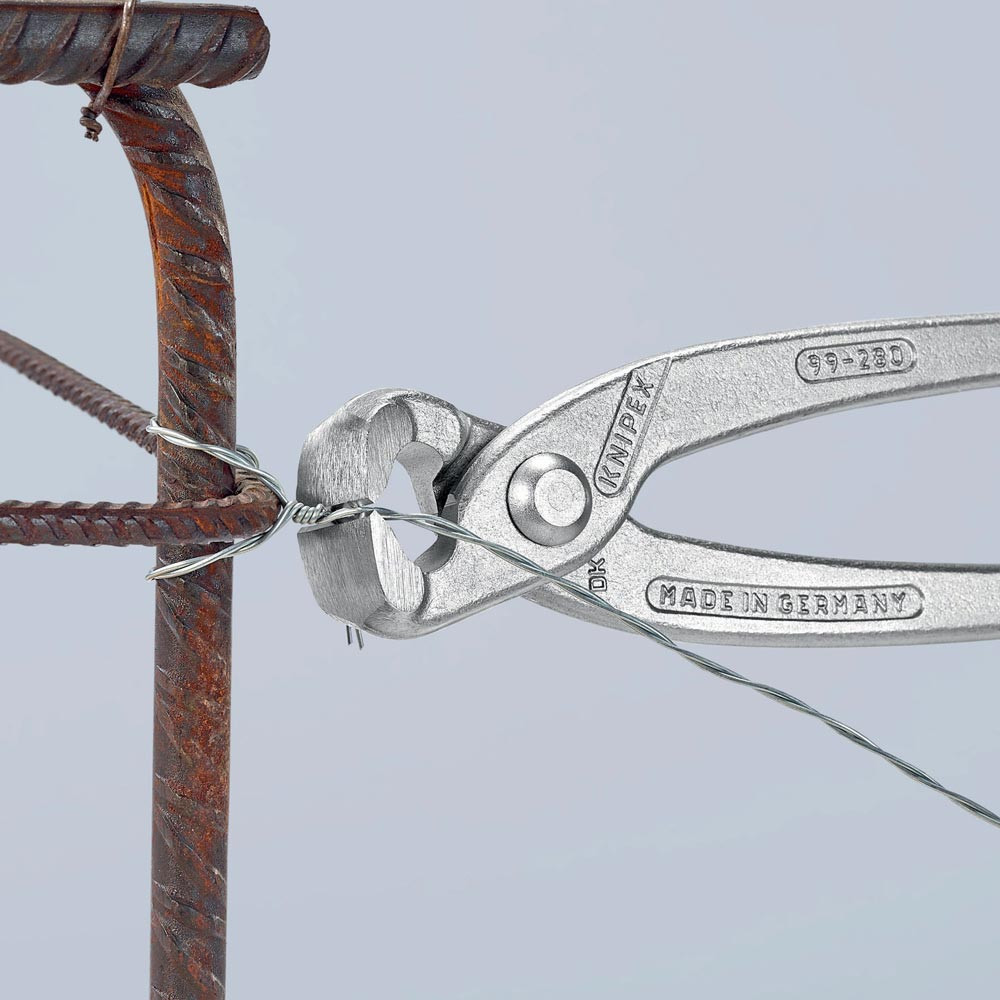 (Rabitz- oder Flechterzange) · zum Verdrillen und Schneiden von Bindedraht von der Rolle in einem Arbeitsgang · Schneiden zusätzlich gehärtet, Schneidenhärte ca. 61 HRC · Spezial-Werkzeugstahl in Sondergüte, geschmiedet, mehrstufig ölgehärtet