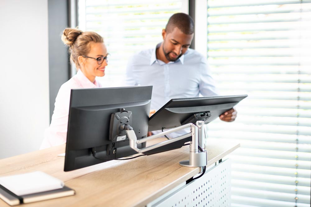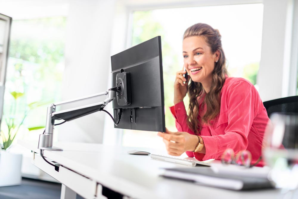 Monitortragarm, 1-teilig, Aluminium mit Gasfederunterstützung, 3-in-1 Befestigung, Aktionsradius 283 mm, TG 7 kg, silber E6475761
