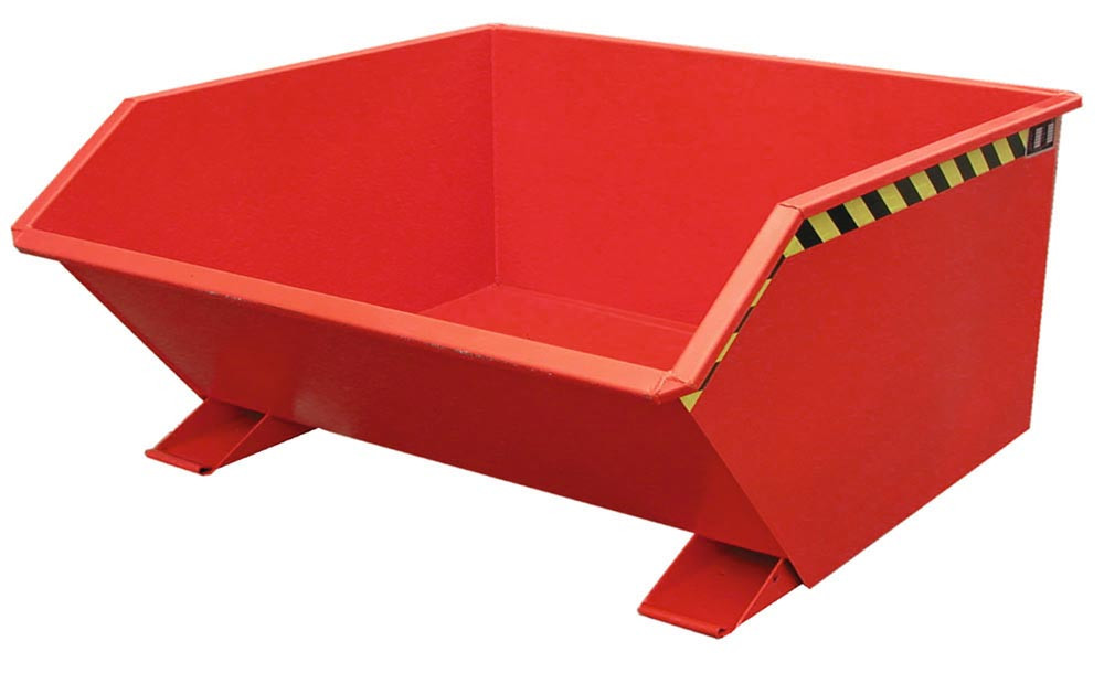 Mulden-Selbstkippbehälter, automatischer Aufrichter, Traglast 1000 kg, LxBxH 1440x1280x680 mm, Vol. 0,75 cbm, RAL 3000 feuerrot