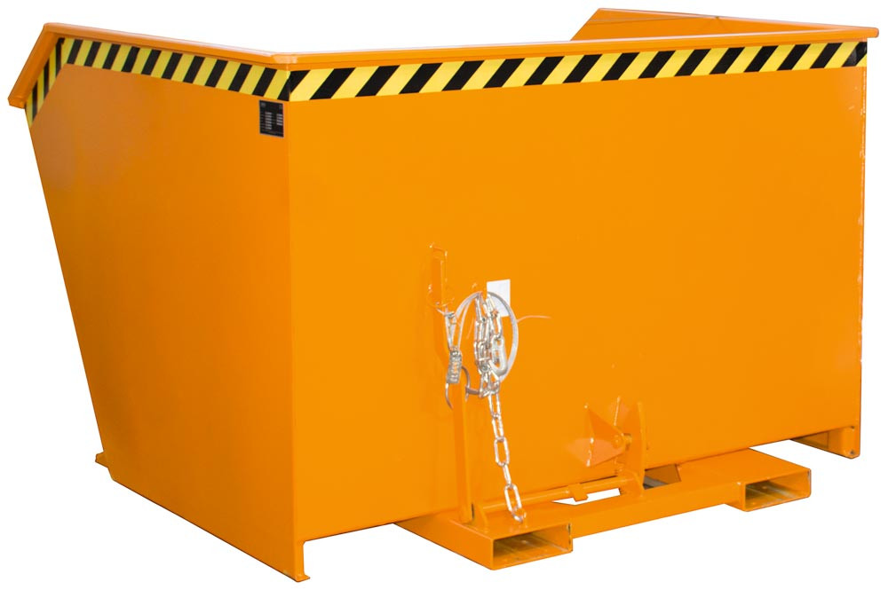Mulden-Selbstkippbehälter, automatischer Aufrichter, Traglast 1500 kg, LxBxH 1640x1680x1090 mm, Vol. 2,00 cbm, RAL 2000 gelborange