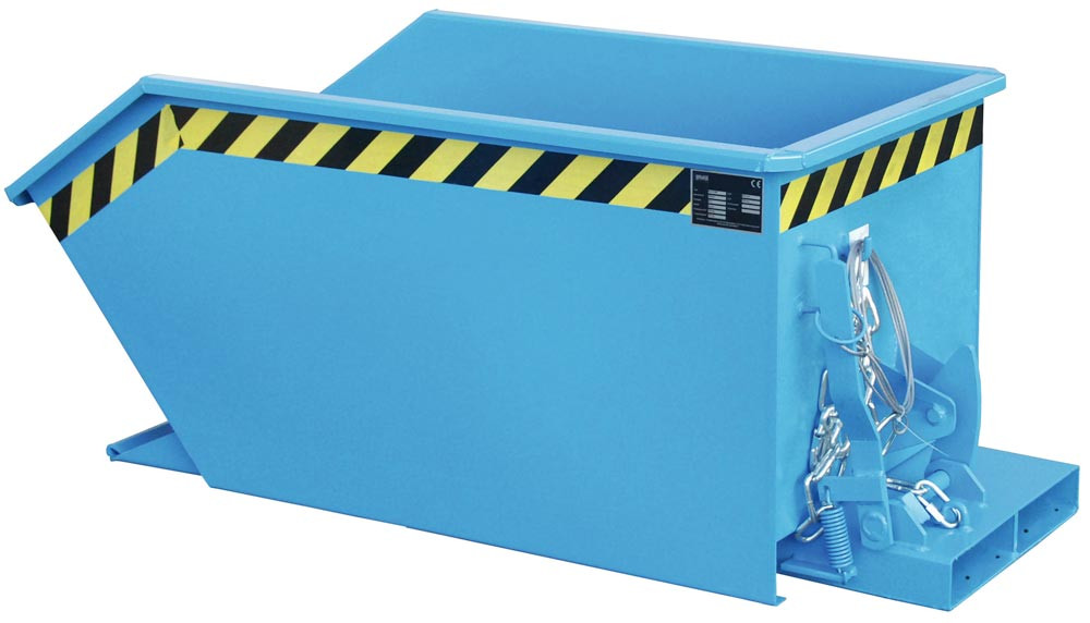 Mulden-Selbstkippbehälter, automatischer Aufrichter, Traglast 750 kg, LxBxH 1440x680x580 mm, Vol. 0,30 cbm, RAL 5012 lichtblau