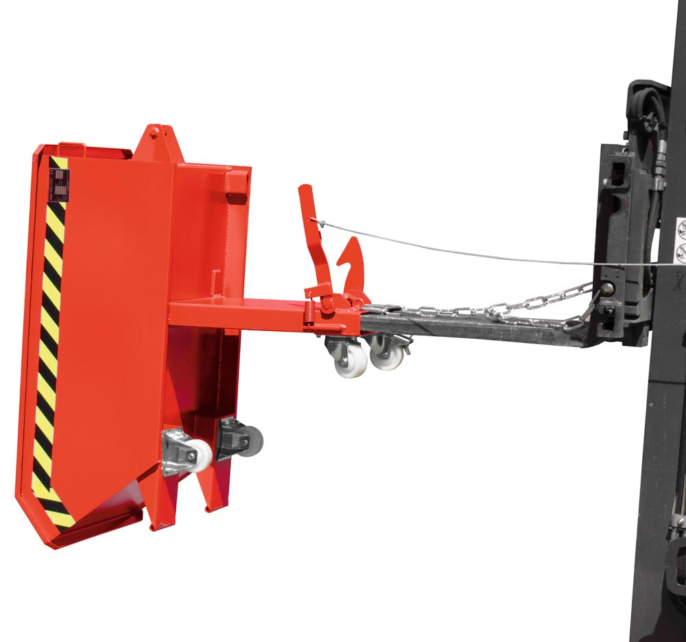 · Extrem niedrige Schüttkantenhöhe von 350 mm ∙ Mit kippbarer Mulde, 3 mm Wannenblech mit umlaufendem Randprofil ∙ Günstiger Kippwinkel, Kippen in jeder Höhe per Seilzug ∙ Sicherung gegen unbeabsichtigtes Abrutschen und Auskippen ∙ Robuste Stahlblechkonstruktion ∙ Stabiler Grundrahmen mit Einfahrtaschen · Ideal für den Einsatz unter Maschinen