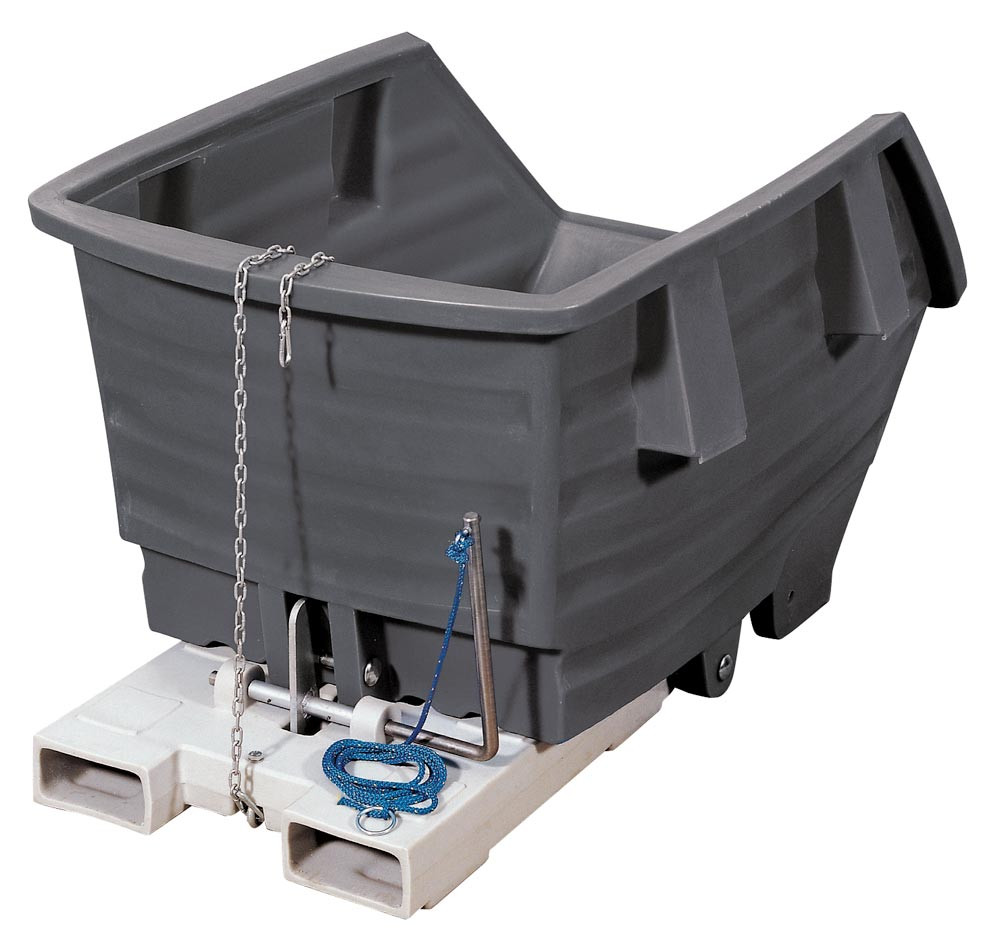Muldenkippbehälter aus PE, Vol. 0,5 cbm, LxBxH 1530x960x790 mm, Traglast 150 kg, mit Staplertaschen, Farbe grau E871791
