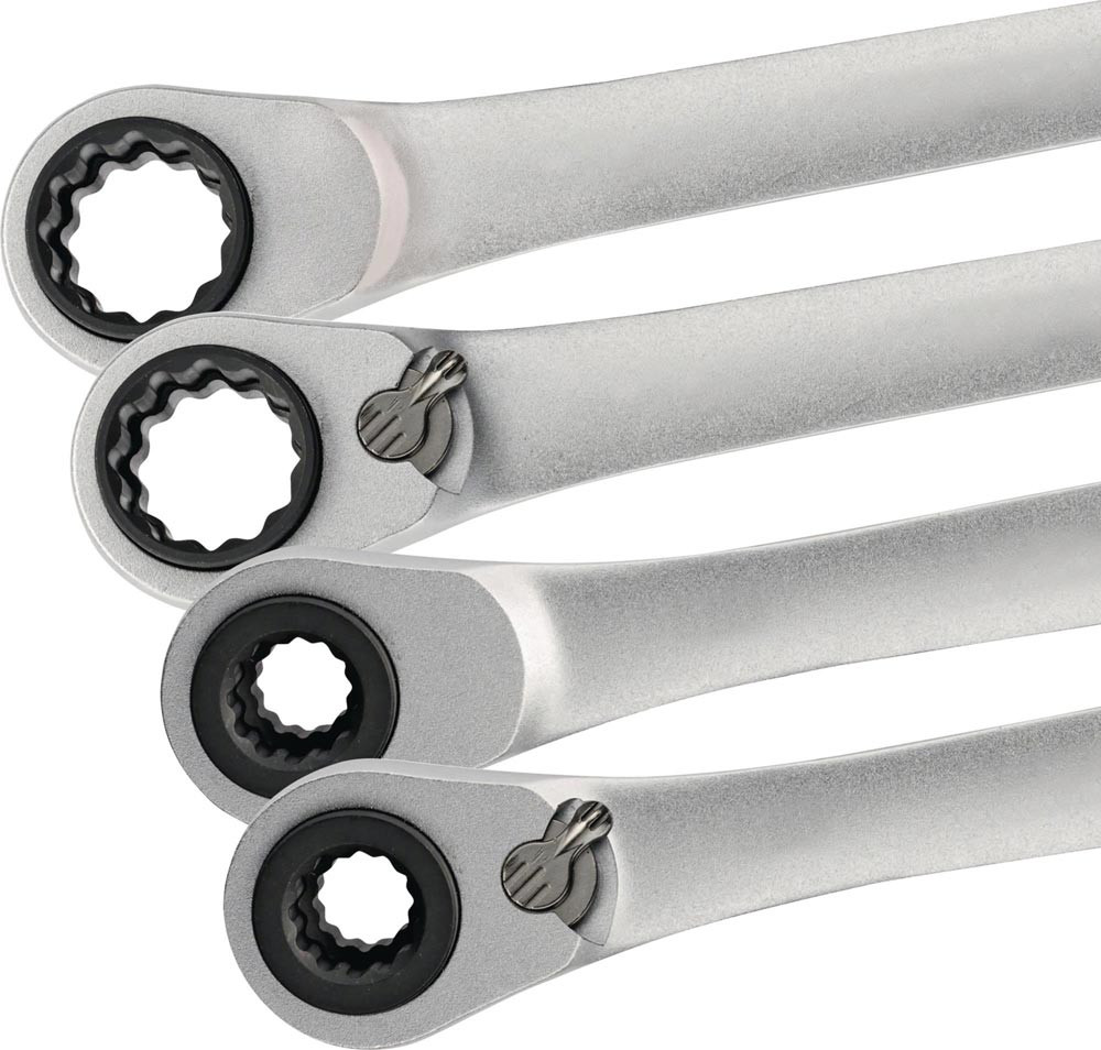 Multifunktionsknarrenringschlüssel 4 in 1 10 / 13 / 17 / 19 mm 12-KT. Länge 220 mm Anzahl Zähne 72