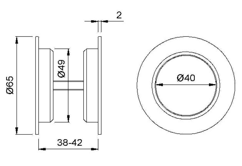 Schiebetürmuschelgriff für Holztüren 38-42 mm · Außendurchmesser 65 mm · Einlass-Ø 50 mm