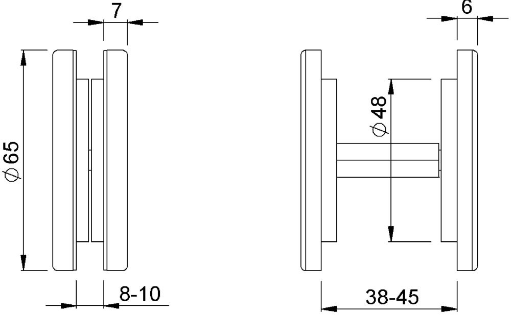 Ø 65 mm Schiebetürmuschelgriff · zum Verschrauben für Glastüren 8-10 mm und Holztüren 38-45 mm