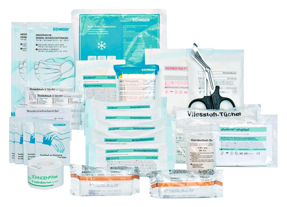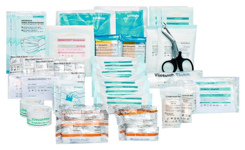 Für Verbandschränke und Erste-Hilfe-Koffer ∙ Hochwertige Markenverbandstoffe (aluderm®) für optimale Wundversorgung und Heilung ∙ Kleben nicht an der Wunde fest ∙ Inhalte nach DIN oder DIN plus (mit Erweiterung)