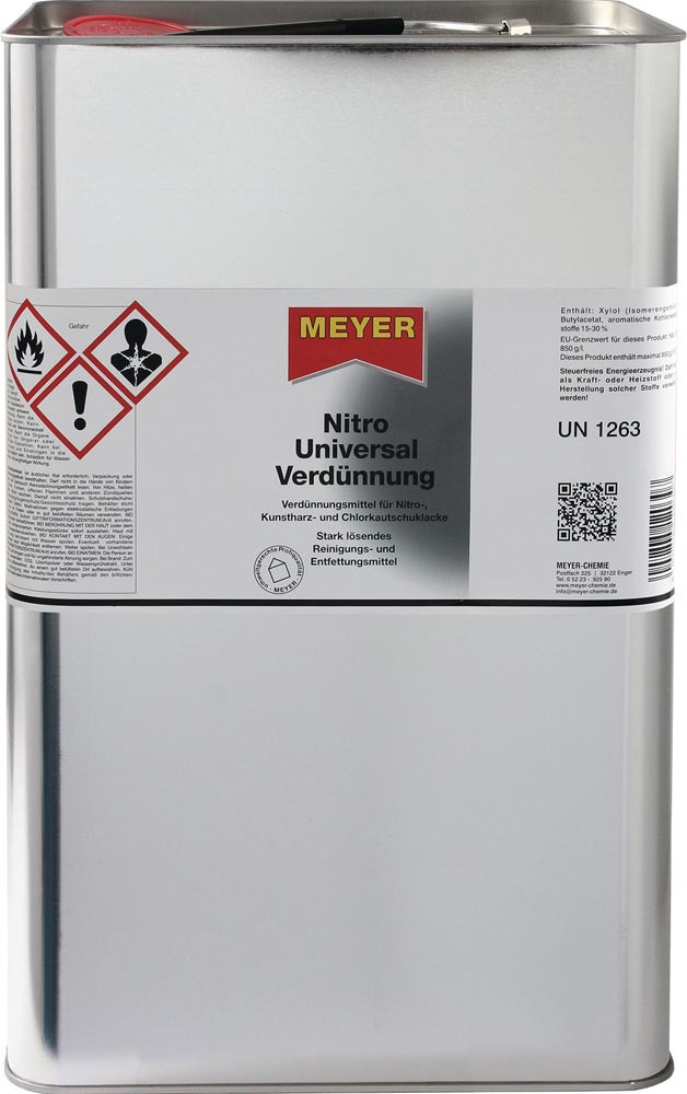 geeignet zum Verdünnen von Nitro-, Nitro-Kombinations-Chlorkautschuk-, Kunstharzlacken · 2K-Lacken auf Basis Epikote sowie luft- und ofentrocknenden Zapon-Lacken · zum Reinigen von Spritzpistolen, Streichgefäßen usw. · zum Entfernen von Schmutz-, Fett- und Farbflecken auf Holz- und Steinböden, Glas usw.