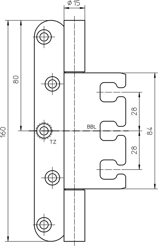 Objektband VARIANT VX 7939/160 Planum Stahl matt verchromt 160 kg 15 mm DINlinks / rechts gefälzte Türen